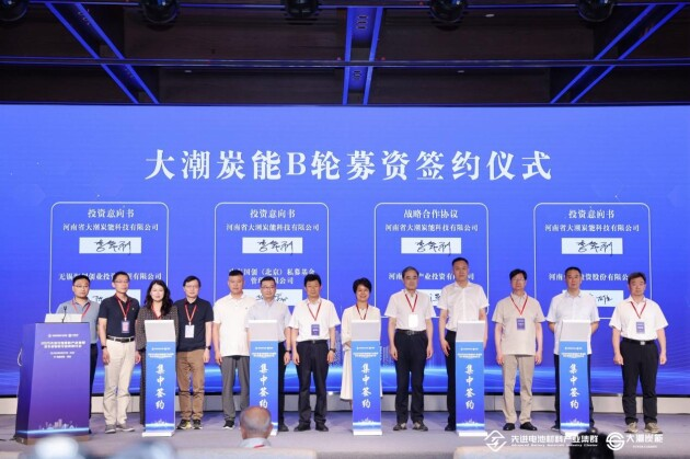 在这次开幕式上,举行了大潮炭能B轮募资政策签约典礼。大潮炭能董事长李常利、分别与中车国创总司理毕晓露、无锡海创董事长陈珉、河南新兴产业投资董事长李洋、河南创投白奕雄订立政策互助意向书。中国工程院院士蒋剑春,常州大学盘问员雷廷宙,滑县政协主席李卫锋,滑县县委常委、统战部部长秦志岩,维科集团总司理周一君,北京水地本钱董事长张云鹤,国投创业投资总监程凌,大潮炭能总司理王利等嘉宾共同见证签约。互助形状的签约将为滑县新材料产业高质地发展注入新能源,提供更坚实的撑握。